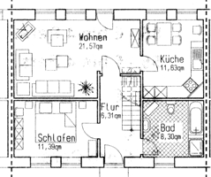 | Grundriss Erdgeschoß | Grundriss Obergeschoß |